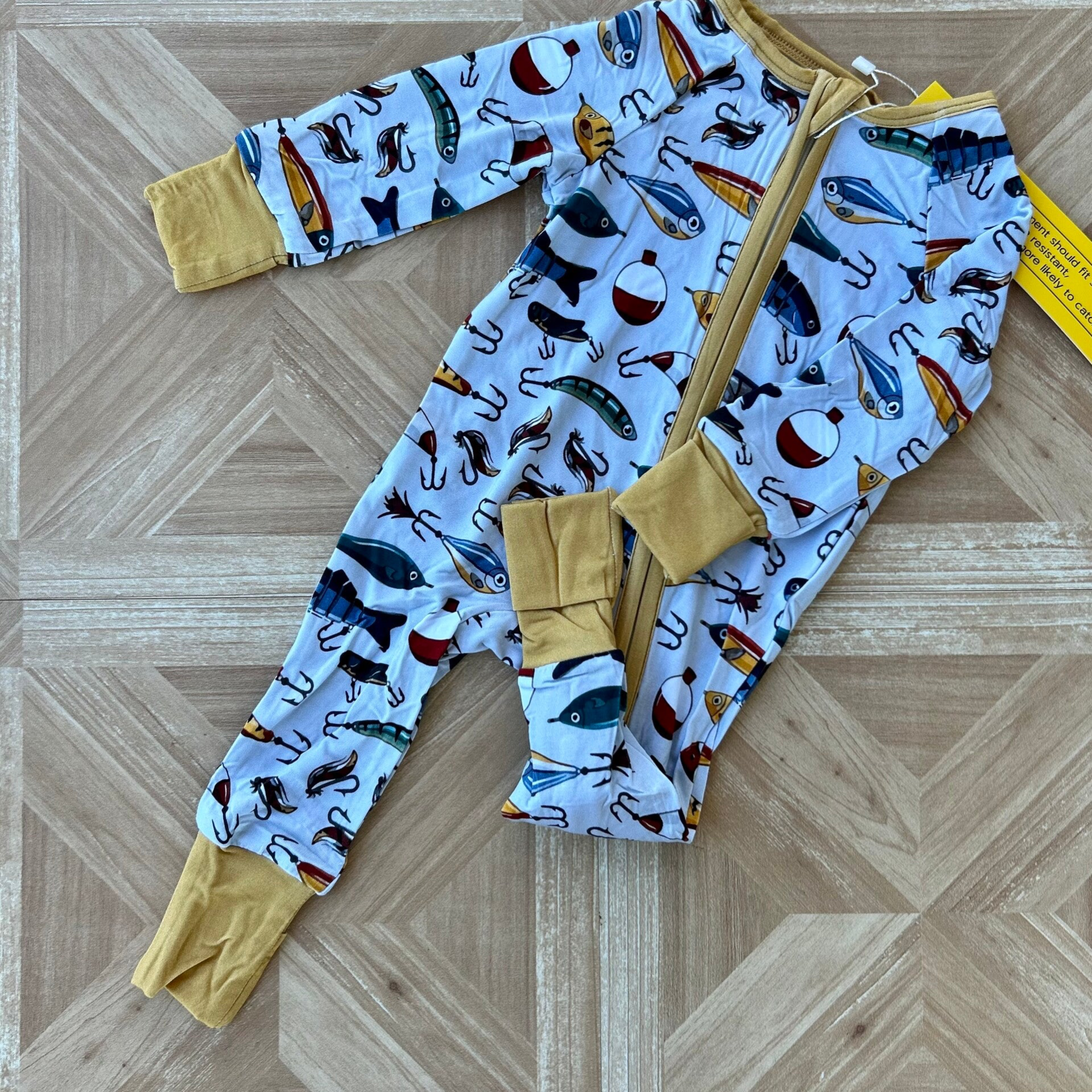 Daddy's fishing buddy? Or just love to fish? This one is for you & so comfy! Fold over hands & feet!